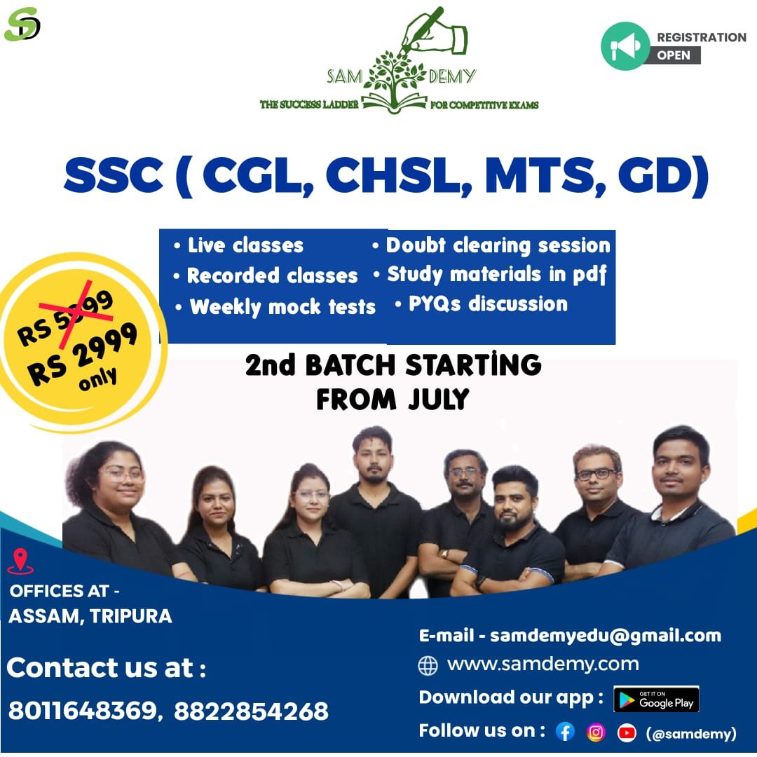 SAMDEMY is an academy/educational firm that started its functioning in July 2023, offering online and offline classes for Assam State Govt. Exams. Our commitment is to deliver quality education at affordable costs, reaching every household in our nation. We also provide guidance and support to government job aspirants and students from standard 3 to standard 12 for their bright career. Our strong feedback system and genuine approach make us a trusted choice among our peers and competitors.